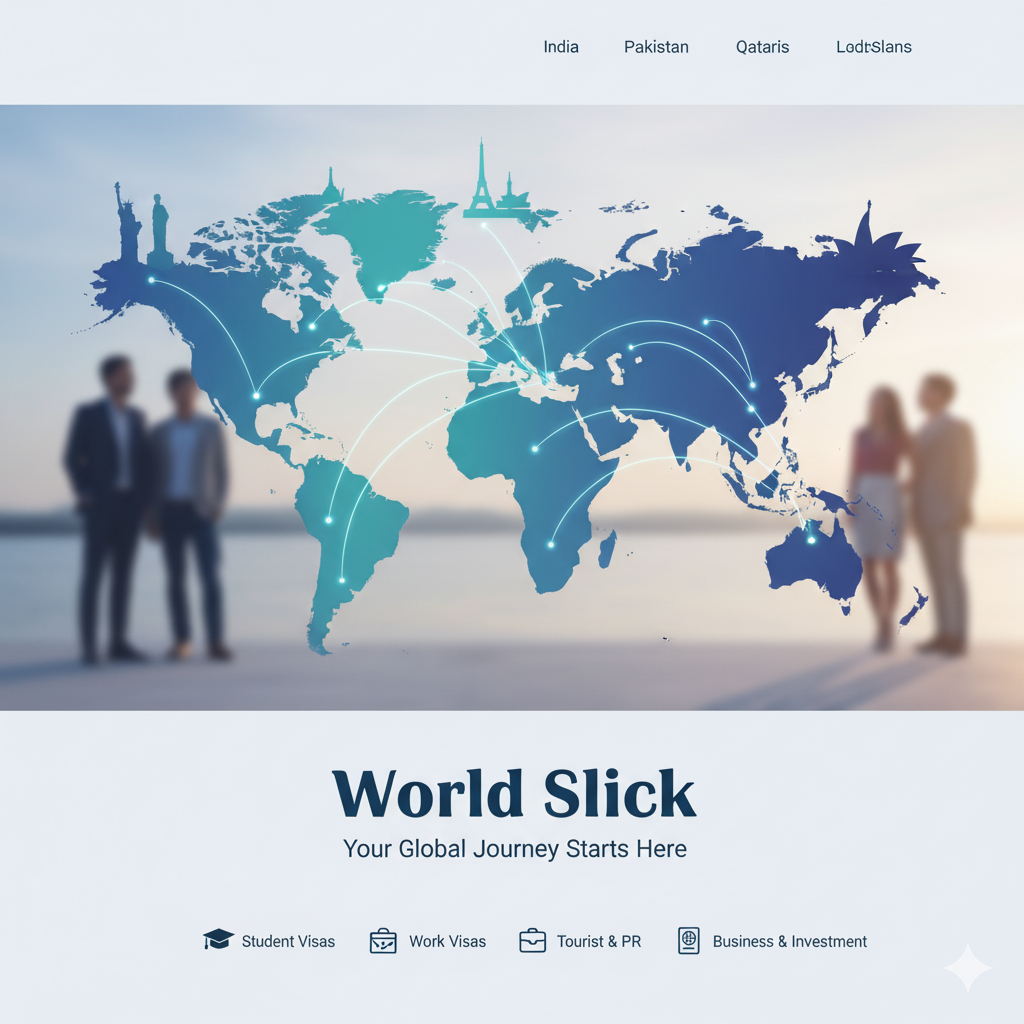 At World Slick, moving abroad should be a life-changing opportunity, not a complicated process. Founded with a mission to simplify international migration, we provide professional visa and immigration services for individuals and families from Asia and GCC countries who aspire to study, work, or settle in the UK, Canada, the USA, Australia, and Europe.